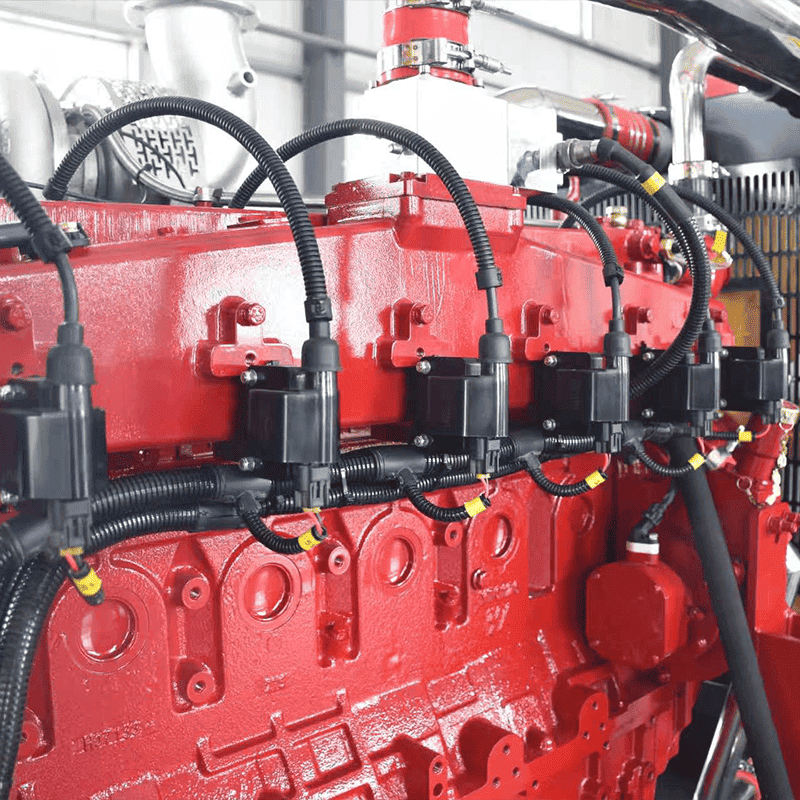 The unit adopts our company independently developed large excess air coefficient combustion organization technology and digital boost matching technology to ensure that the unit achieves lean combustion in the full power range and accurately controls the excess air coefficient ≥ 1.5. The engine adopts our gas composition adaptive technology, which can automatically adapt to natural gas and biogas of various concentrations and calorific values, enabling the engine to achieve rapid combustion, even operation of each cylinder, and improve power generation efficiency when using natural gas and biogas.