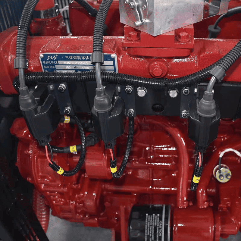 The unit adopts our company independently developed large excess air coefficient combustion organization technology and digital boost matching technology to ensure that the unit achieves lean combustion in the full power range and accurately controls the excess air coefficient ≥ 1.5. The engine adopts our gas composition adaptive technology, which can automatically adapt to natural gas and biogas of various concentrations and calorific values, enabling the engine to achieve rapid combustion, even operation of each cylinder, and improve power generation efficiency when using natural gas and biogas.