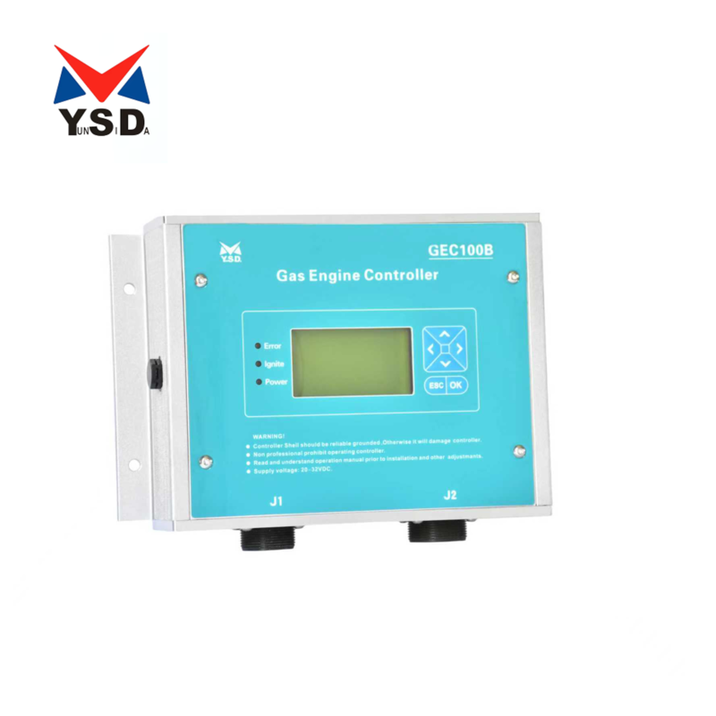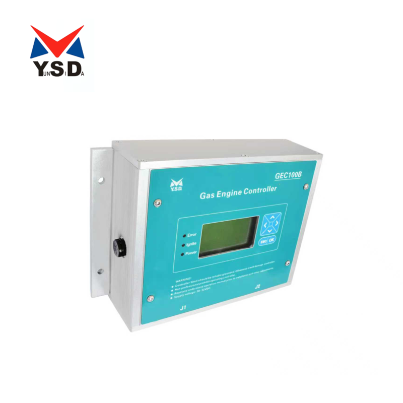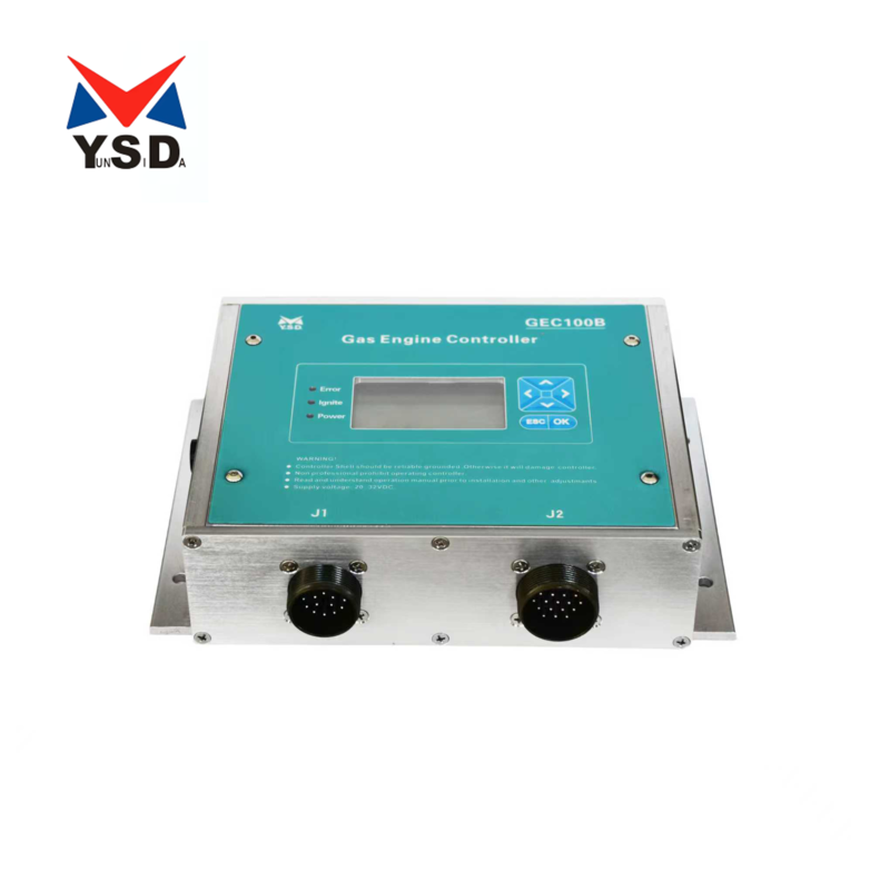 GEC100B gas engine (generation) control system mainly integrated ignition control, speed control and air fuel ratio test etc function. It works for 200KW gas engine. Gas engine ignition advance angle already been set according to different engine and do not allowed user adjustment. Stabilize and mobilize parameter also been set normally and could fulfill most user and engine requirement, if unstable could adjustment. GEC100B Air Fuel Ratio test function could be test by oxygen sensor and display on the screen. It is easy for user to adjust proportional mixer of gas intake gas engine to let user adjust needed Air Fuel Ratio. At same time, observe through the engine exhaust temperature and vibration test equipment to ensure engine exhaust temperature and vibration fulfill customer requirement.